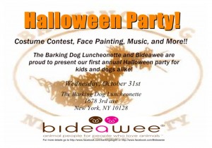 There are so many party options available in NYC for celebrating Halloween it’s hard to choose which one to go to, so we’ll help you make that decision! LLD is going to be at the Halloween party at The Barking Dog Luncheonette on Halloween hosting a coloring contest! Stop by between 6:30 and 8:30 that evening for some family fun! Bideawee is going to be there too hosting a pet costume contest, and there will be other fun things going on as well like facepainting, music, a costume contest for children, and food! LLD will pick three winners of the coloring contest who can enjoy a free kids meal at The Barking Dog on 3rd Ave. Should be a great time and a great opportunity to score some delicious food! Stop by and see LLD!!!