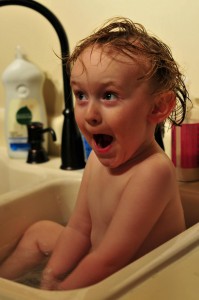 Sometimes the kitchen sink is the best place for an impromptu bath!