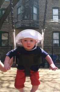 Taking walks and doing Stroller Strides are definitely fun, but Henry’s favorite activity by far is going to one of the MANY parks in Chicago and going on the swing set. He’s at a great age right now (6 months) and can participate in a lot of different activities. He is crawling all over the place and can maneuver around pretty easily. This is fun for him, but a lot of work for me! Throwing him in a swing seems to solve that “problem.” Lots of movement for him and a lot of security for me!