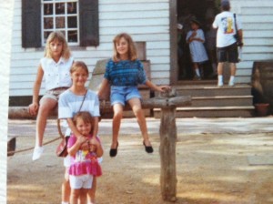 4 of my 5 girls in Colonial Williamsburg for a family vacation