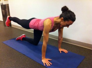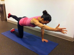 This exercise works both abdominal tone and back-body strength. It’s also great for maintaining balance.